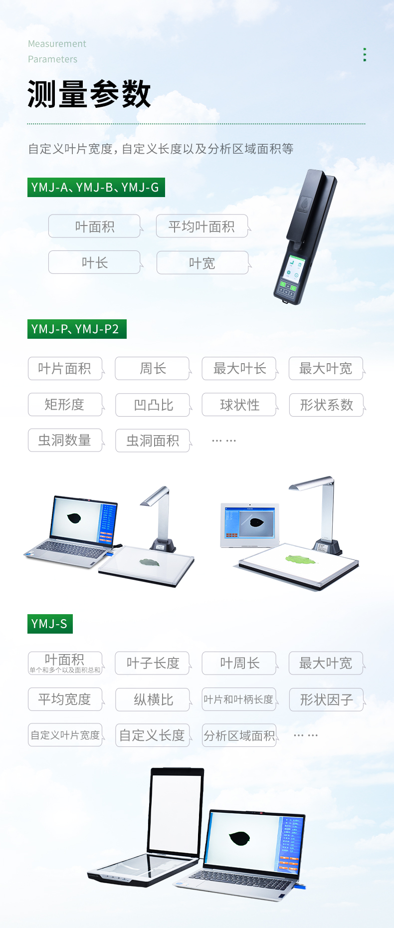YMJ-P2拍照式葉面積儀(平板版)由圖像采集設備和圖像處理軟件組成,采用本公司新開發(fā)的圖像識別軟件,根據(jù)葉片輪廓特征提取、圖形實物轉(zhuǎn)換、邊緣檢測等技術,能夠形象并快速得到所測葉片面積、周長、蟲洞數(shù)量等參數(shù),并且可以將葉片分段測量,系統(tǒng)會自動合并兩張圖片并綜合分析各參數(shù)。相比傳統(tǒng)的葉面積,具有測量更快速簡便、結(jié)果更形象客觀、數(shù)據(jù)多樣并大大減少了人為操作帶來的誤差。