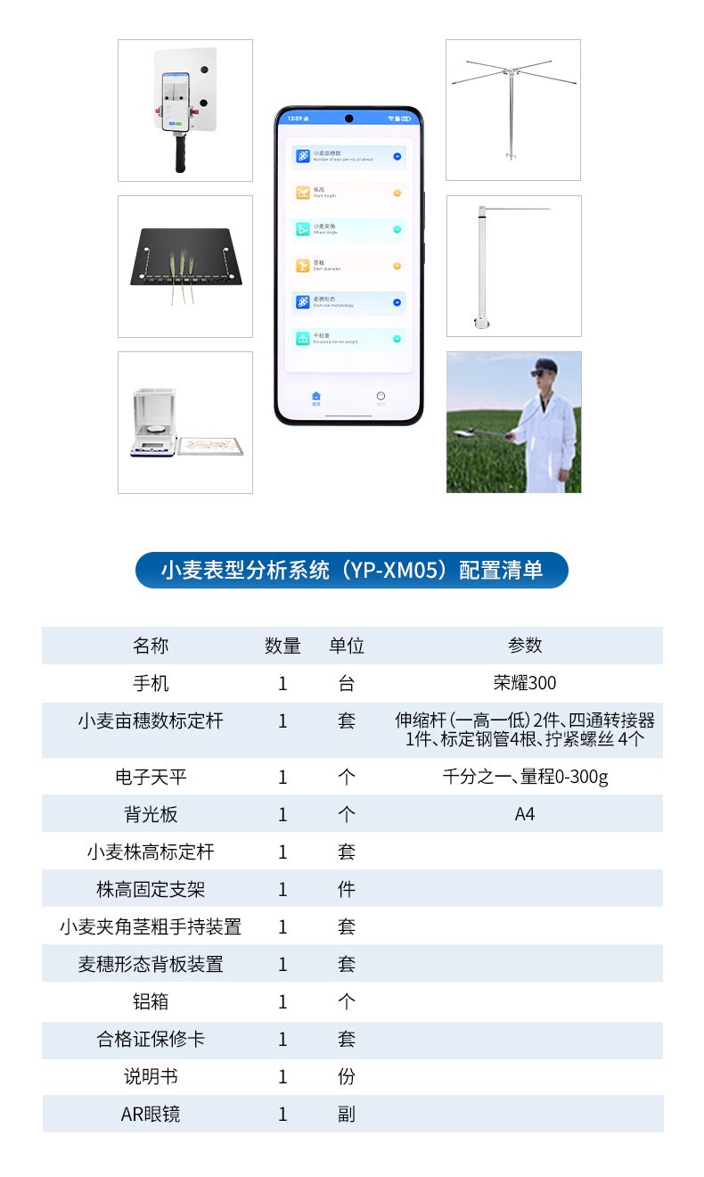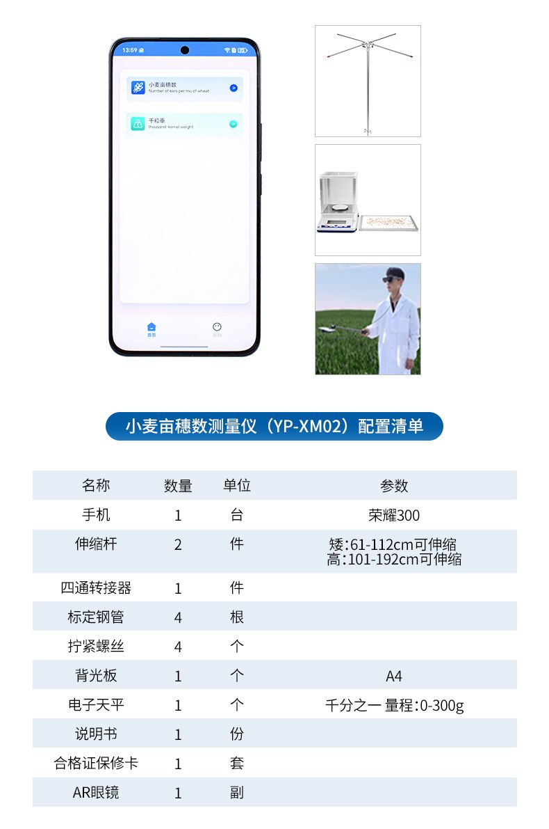 【產(chǎn)品簡(jiǎn)介】小麥株高測(cè)量、小麥畝穗數(shù)測(cè)量、小麥千粒重、夾角莖粗測(cè)量、麥穗形態(tài)測(cè)量(AR眼鏡版)